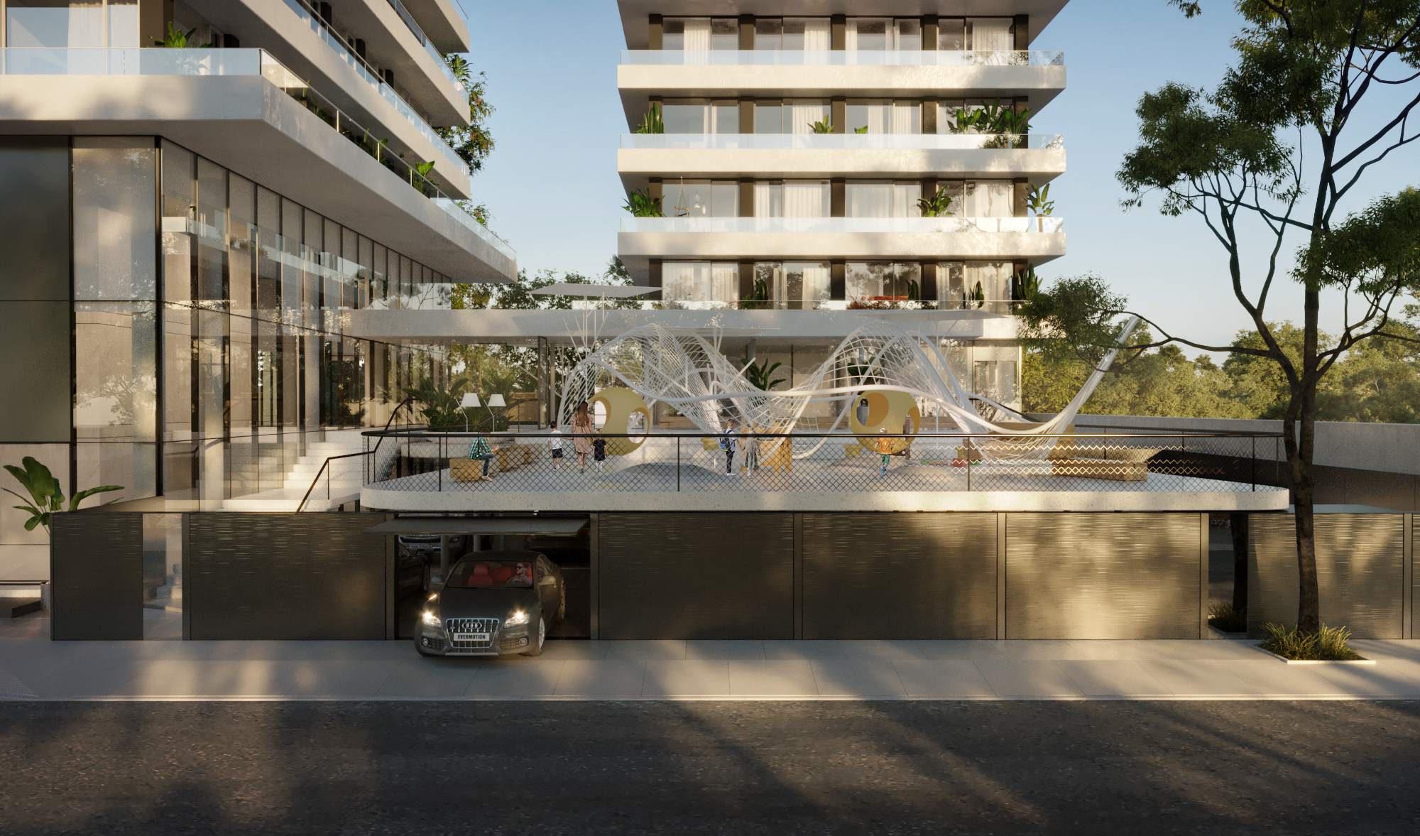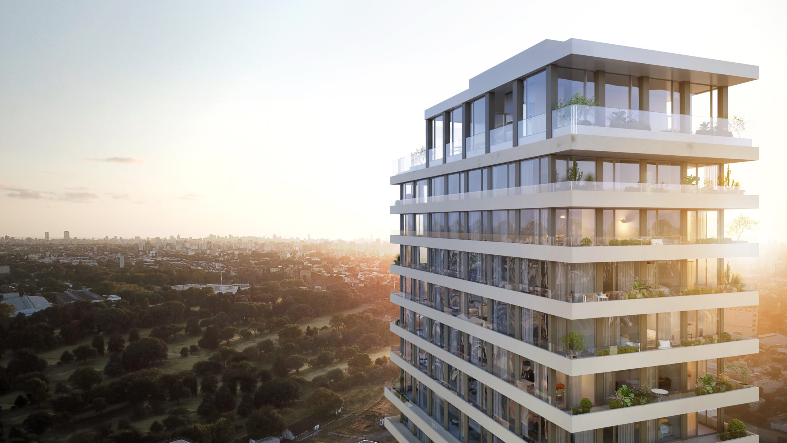 El proyecto incorpora más de 1.000 m² de amenities, entre los que se incluyen terrazas, espacios verdes y áreas comunes.